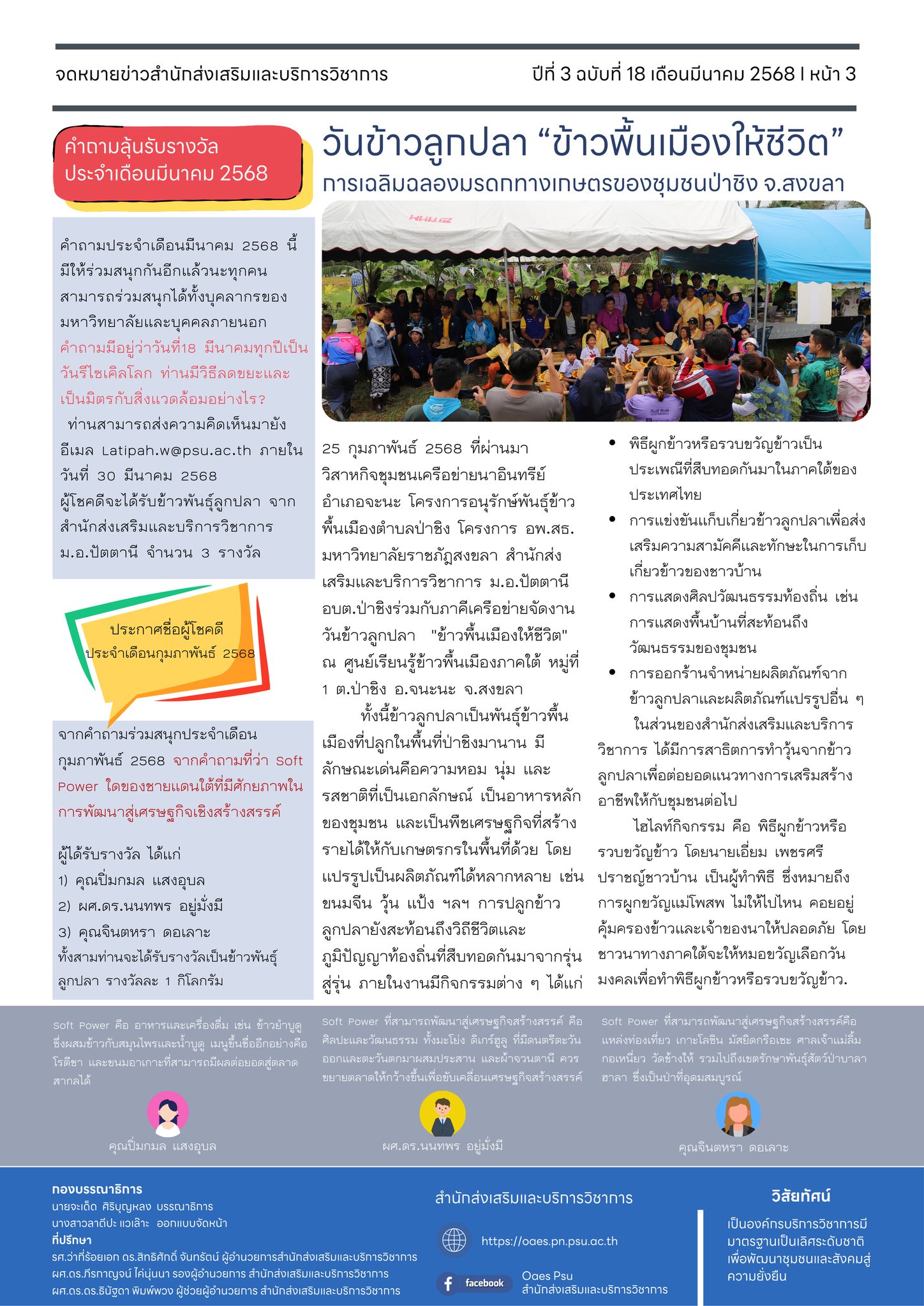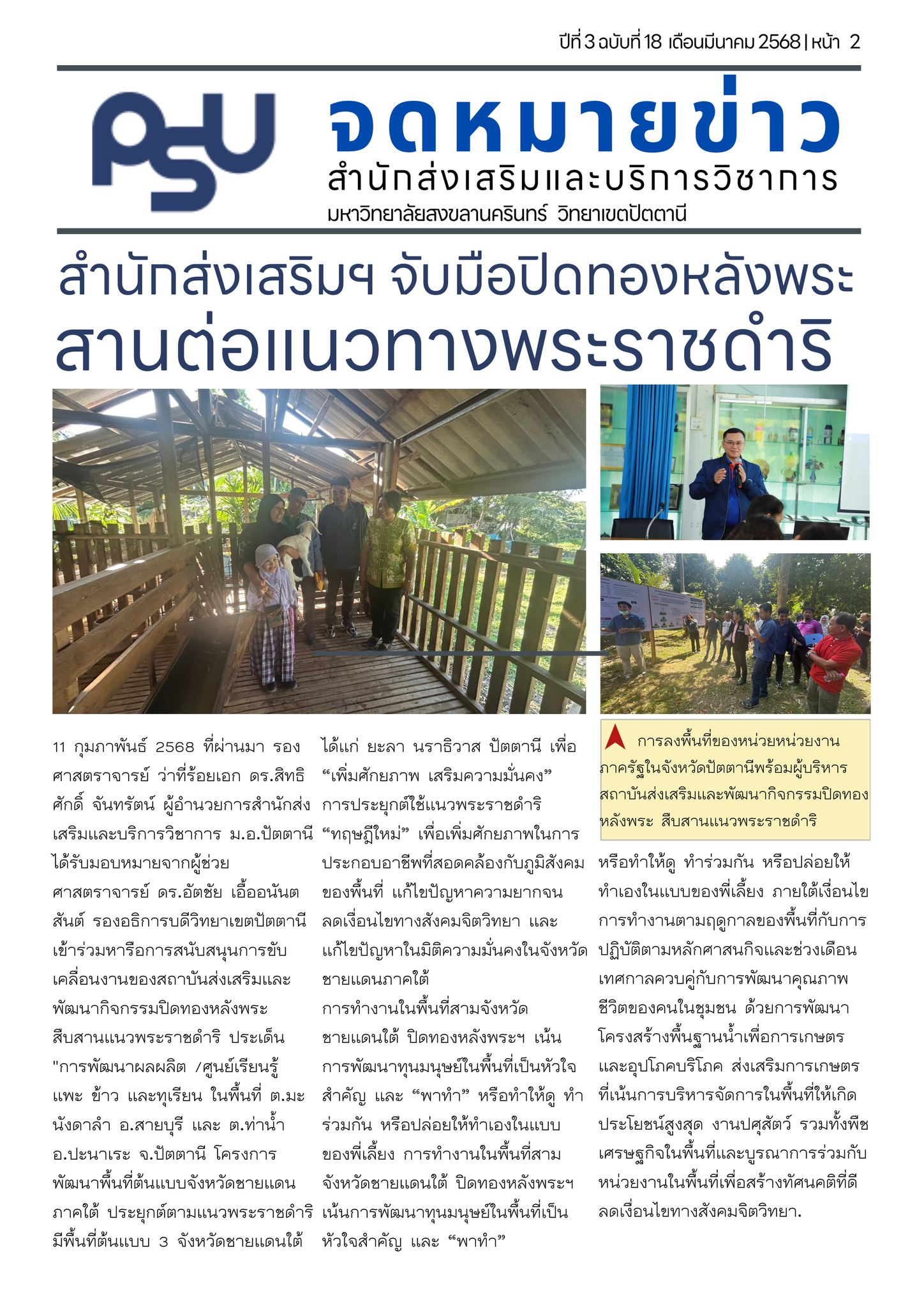 สำนักส่งเสริมและบริการวิชาการ ปีที่ 3 ฉบับที่ 18 เดือน มีนาคม 2568