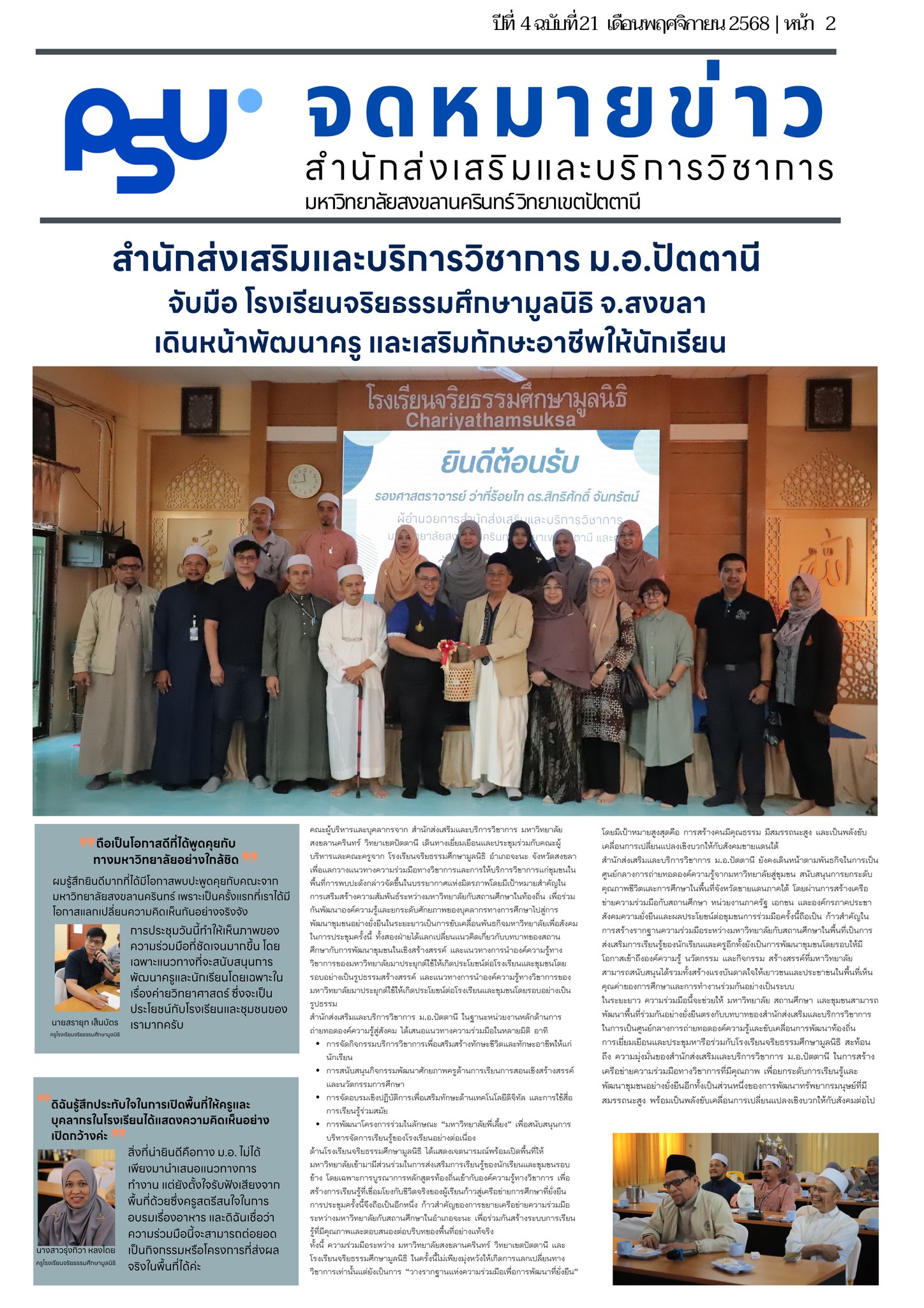 สำนักส่งเสริมและบริการวิชาการ ปีที่ 4 ฉบับที่ 21 เดือน พฤศจิกายน 2568